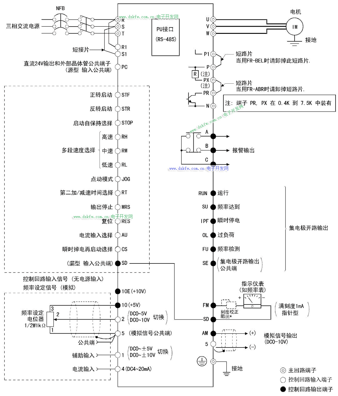 變頻器接線圖說明 多圖詳解變頻器的端子功能與接線 三菱FR-A540型變頻器接線,三菱變頻器