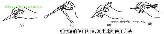 (a),(b)驗電筆的正確握法;(c),(d)驗電筆的錯誤握法
