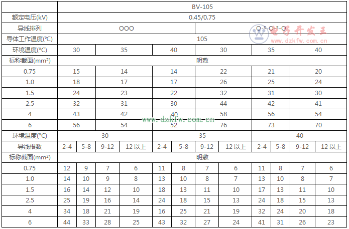 BV-105耐熱聚氯乙烯絕緣電線的載流量對(duì)照表