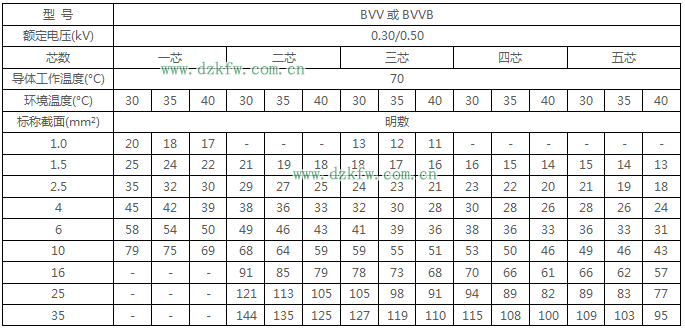 BVV、BVVB絕緣電線明敷時(shí)持續(xù)載流量