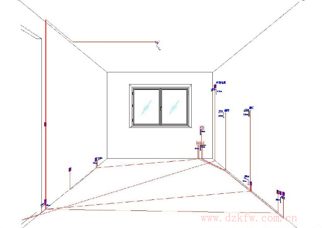 最完美的肯定是按照紅色的線路來布線上墻,但是這種斜槽是比較難開槽的,所以絕大多數的施工隊都會選擇藍線的走線方式,這個也無可厚非,優秀一點的電工師傅會在這個拐角處也適當的處理一下,有一些弧形的,我們對于這點其實不必過于較真。