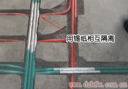 3.強電線和弱電線不能同時穿入同一根線管敷設,以免強電電場干擾弱電線的信號傳輸,同時也不安全。兩者在平行敷設時,相互距離>30cm為宜。