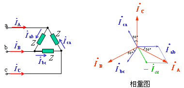 三相電源對稱,線電壓(即負載相電壓)對稱。