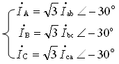 (3)線電流相位滯后對應相電流(用相電流的第一個下標字母標出)30o。