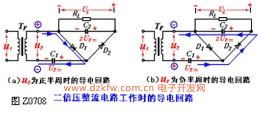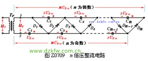 圖Z0709為n倍壓整流電路,整流原理相同。可見,只要增加整流二極管和電容的數