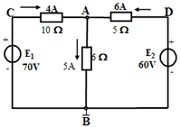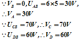 【例】如圖所示電路,以B點為參考點,求各點的電位;再以A點為參考點,求各點的電位。