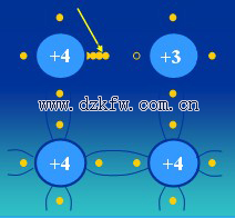 (1)P型半導體:在硅(或鍺)的晶體內摻入少量的雜質,如硼(或銦)等,就構成了P型半導體。摻入三價元素,形成一個空穴。相鄰共價鍵上的電子受熱激發移動填補到這個空穴中,硼原子成為負離子。 P型半導體中的空穴成為多數載流子——多子,受熱激發而脫離共價鍵的電子為少子。