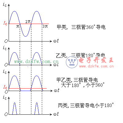 低頻功率輸出級按功放管的工作狀態(tài)為甲類、乙類、丙類三種。