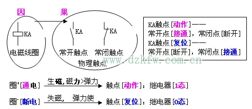 ◇瞧瞧看●●●電磁繼電器KA的線(xiàn)圈[通電]之后,它的觸點(diǎn)是[怎樣動(dòng)作]的?