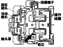 在交流接觸器周圍施工,碎屑侵入內(nèi)部。