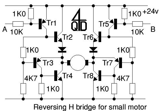 驅(qū)動電機時,保證H橋上兩個同側(cè)的三極管不會同時導(dǎo)通非常重要。如果三極管Q1和Q2同時導(dǎo)通,那么電流就會從正極穿過兩個三極管直接回到負(fù)極。此時,電路中除了三極管外沒有其他任何負(fù)載,因此電路上的電流就可能達(dá)到最大值(該電流僅受電源性能限制),甚至燒壞三極管。基于上述原因,在實際驅(qū)動電路中通常要用硬件電路方便地控制三極管的開關(guān)。