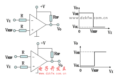 (1)、單限比較器:單限比較器很靈敏,但是抗干擾能力差。