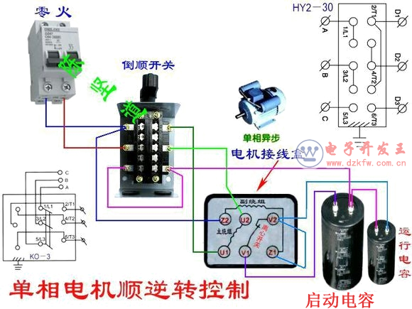 雙電容單相電機正反轉接線圖