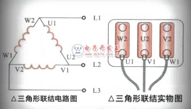 ■對于三相交流電動機4.0KW以上的,其都是采用三角形連接形式,見下圖所示。