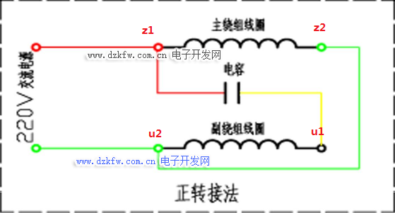 Z1和U1用連接片連接起來,再把Z2和U2用連接片連接起來,用導(dǎo)線分別接入到控制開關(guān)的火線和零線上去,就是正轉(zhuǎn)。