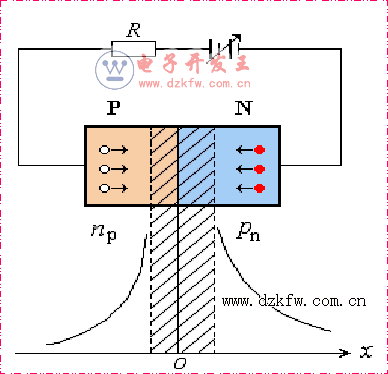 PN結(jié)正向?qū)щ姇r(shí),多子擴(kuò)散到對(duì)方區(qū)域后,在PN結(jié)邊界上積累,并有一定的濃度分布。積累的電荷量隨外加電壓的變化而變化,當(dāng)PN結(jié)正向電壓加大時(shí),正向電流隨著加大,這就要求有更多的載流子積累起來以滿足電流加大的要求;而當(dāng)正向電壓減小時(shí),正向電流減小,積累在P區(qū)的電子或N區(qū)的空穴就要相對(duì)減小,這樣,當(dāng)外加電壓變化時(shí),有載流子的向PN結(jié)“充入”和“放出”。,PN結(jié)的擴(kuò)散電容CD描述了積累在P區(qū)的電子或N區(qū)的空穴隨外加電壓的變化的電容效應(yīng)。