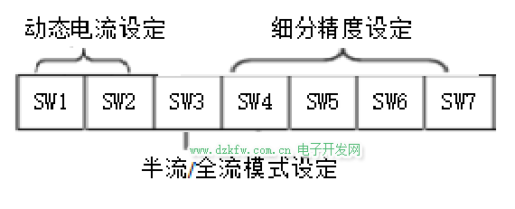 動態電流設定:能夠允許的 最大電流,峰值電流.根據步進驅動器正面表格,設定電流和細分精度,其中SW3為半/全模式設定:此項設定若設定為ON,可理解為在無脈沖情況下驅動器輸出電流自動降為額定輸出電流以下大約70%,防止電機發熱。