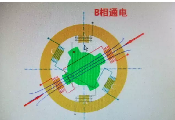 當某相定子勵磁后,它吸引轉子,轉子的齒與該相定子磁極上的齒對齊,轉子轉動一個角度,換一相得電時,轉子又轉動一個角度。如此每相不停地輪流通電,轉子不停地轉動。