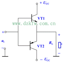 工作原理:當輸入信號 ui = 0 時,兩管均不導通,無電流流過負載,輸出電壓 uo = 0。