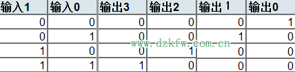請看解碼器的真值表(圖8)。由該表可知, 2個輸入信號可通過4個輸出信號中的一個輸出。比如當兩個輸入為二進制時,讓4個輸出信號分別對應十進制的0、1、2、3,就可以認為這是一個將二進制解碼為十進制的電路。