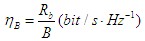 在數字調制中,常用帶寬效率ηb 來表示它對頻譜資源的利用效率,其定義為在一給定的頻譜帶寬(1Hz)內的數據通過率。若為數據率(也稱為比特率,單位:bit/s),是被調制信號所占據的帶寬,則帶寬利用率定義為