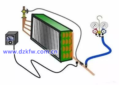點(diǎn)燃檢漏燈,手持鹵素?zé)羯系目諝夤,?dāng)管口靠近系統(tǒng)滲漏處時(shí),火焰顏色變?yōu)樽纤{(lán)色,即表明此處有大量泄漏。這種方式有明火產(chǎn)生,不但很危險(xiǎn),而且明火和制冷劑結(jié)合會(huì)產(chǎn)生有害氣體,此外也不易準(zhǔn)確地定位漏點(diǎn)。所以這種辦法現(xiàn)在幾乎沒有人使用了。